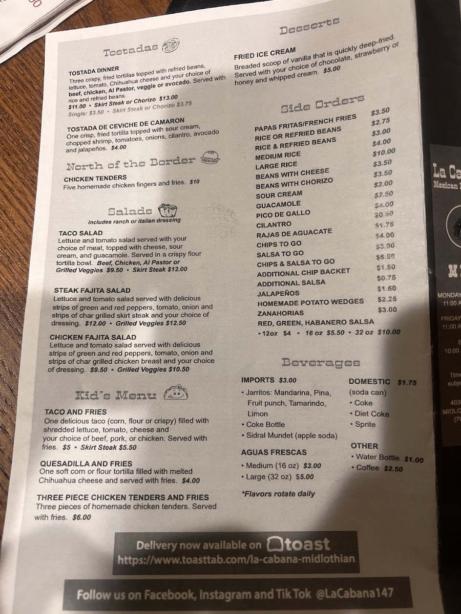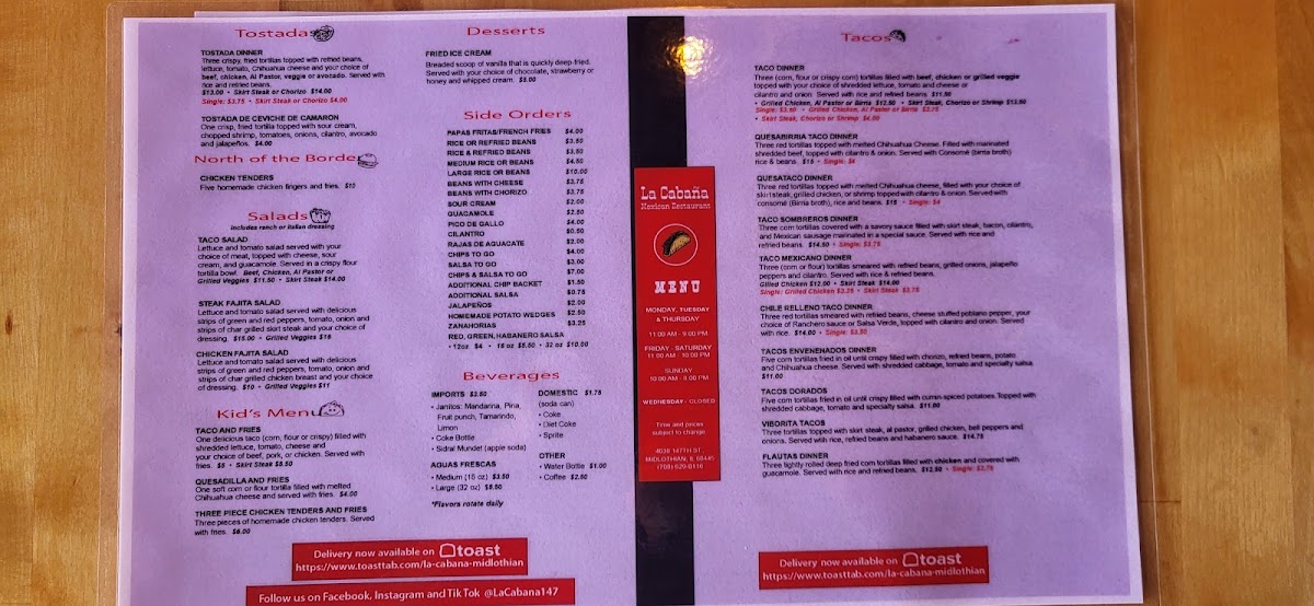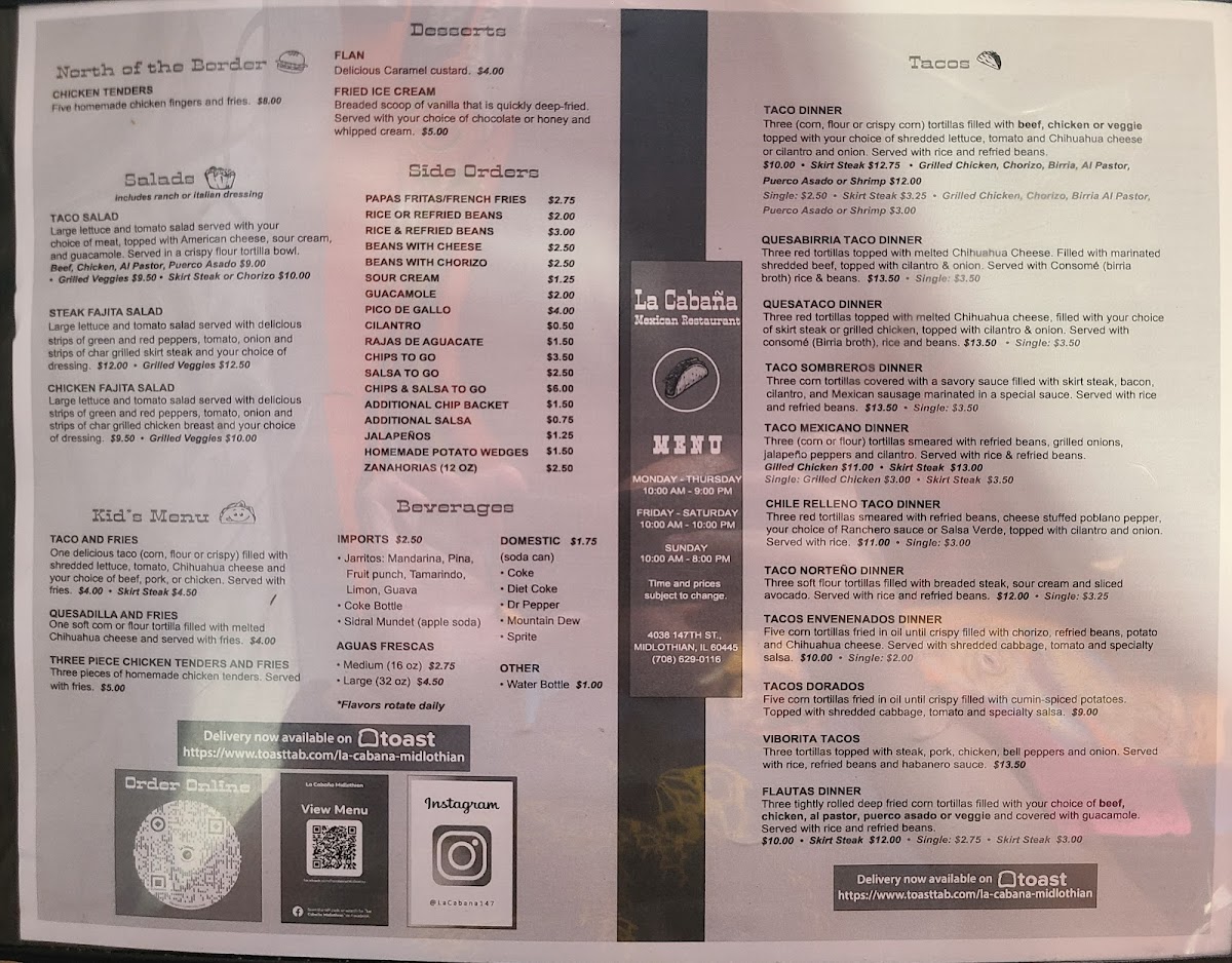 At La Cabana Midlothian, the menu dazzles with authentic Mexican flavors that captivate the senses. Located in Midlothian, IL, this charming eatery presents a range of enticing options that promise to please any palate.